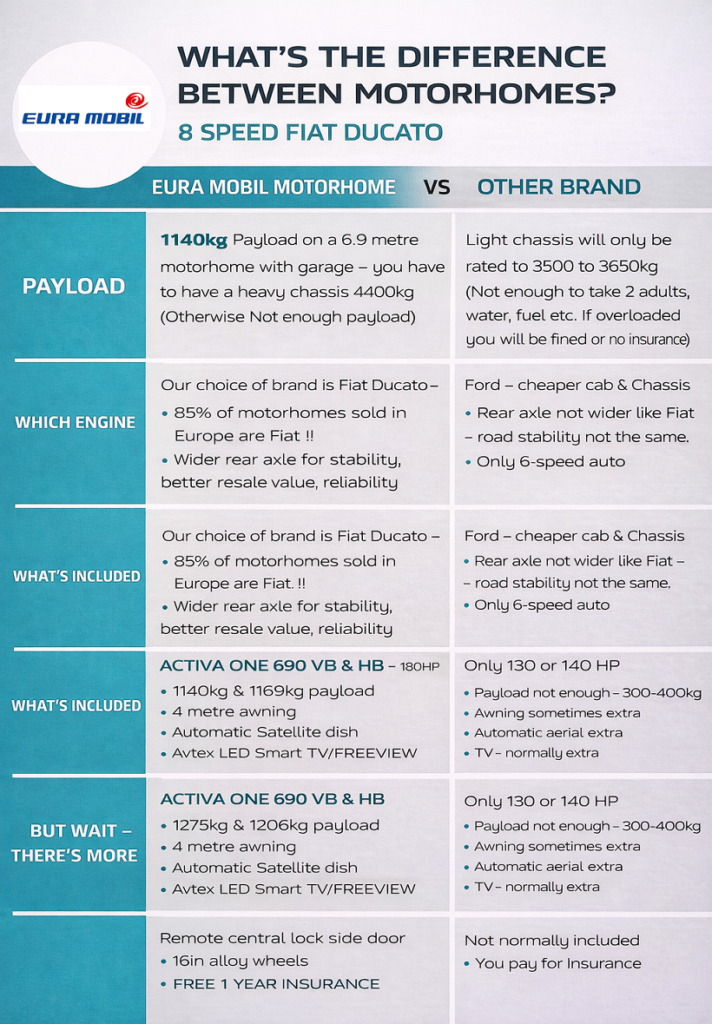 • 10 years leak Guarantee for our motorhomes with superstructure