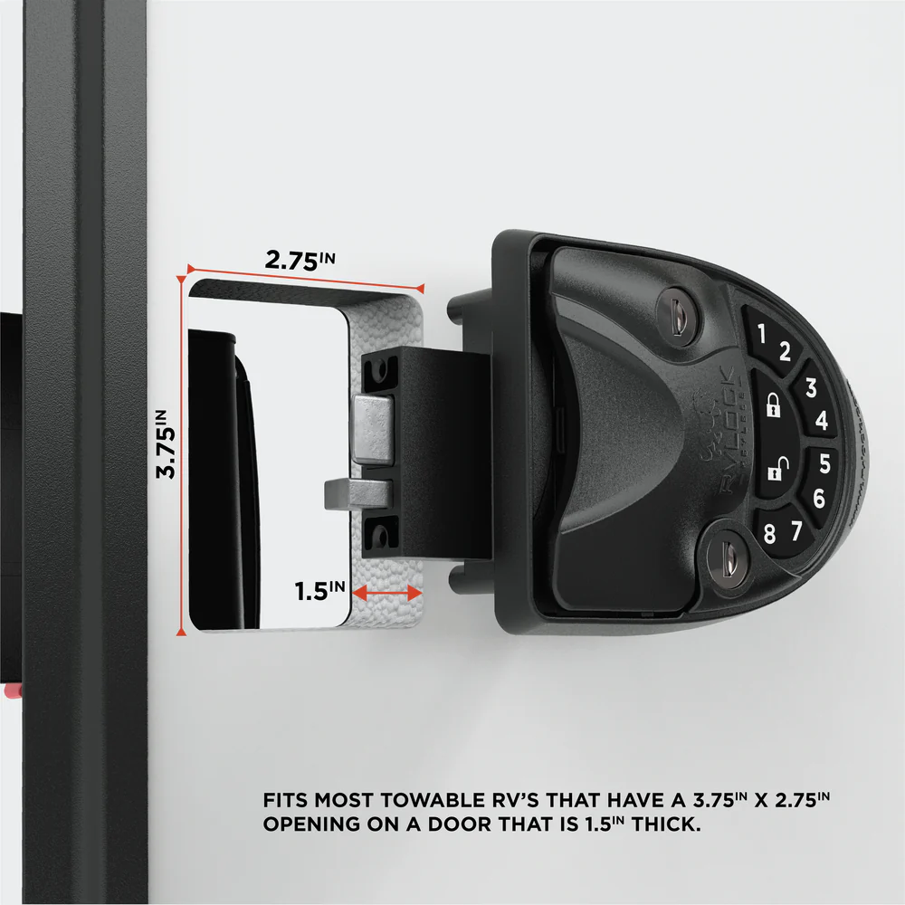The RVLock V4 is compatible with most travel trailers that have a 1.5″ thick door. Featuring a full metal construction and our premium Duro silicone keypad that is developed to endure any adventure you take on.